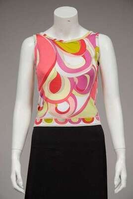 One by Pucci in a bright swirly print; the other by CHADO Ralph Rucci with decorative seaming in a pale sage green. Size small.