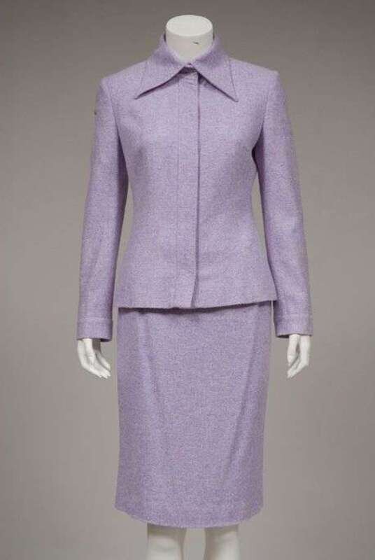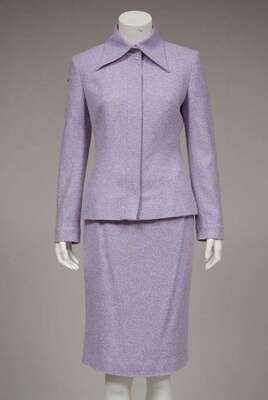 Including a floral blouse, a pink silk sleeveless waist-tie blouse, a chartreuse boucle silk Spring coat and matching capris pants, and a lavender heather silk skirt suit. Size 40/42.