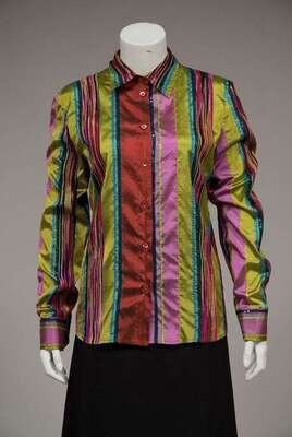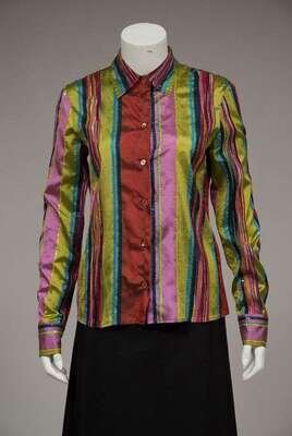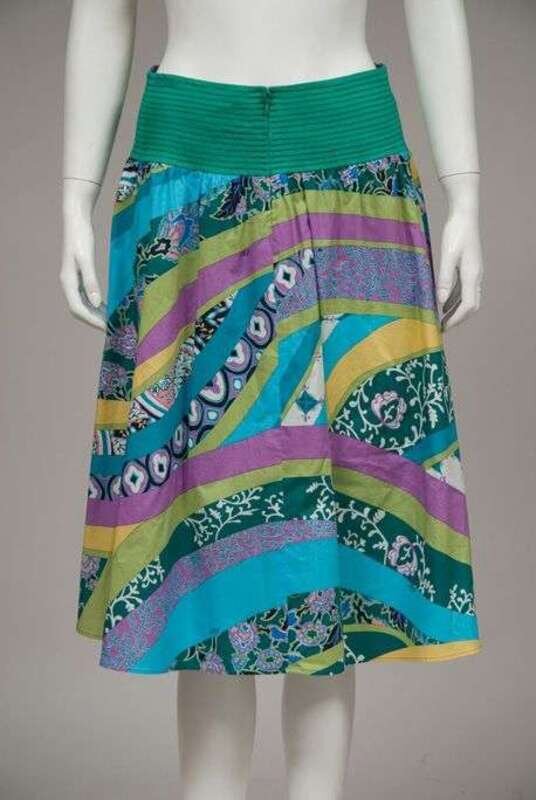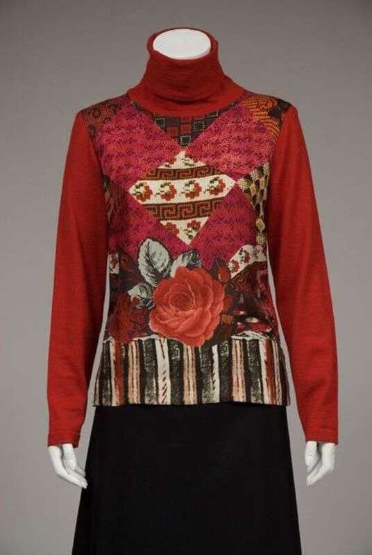 Including two turtleneck sweaters, three button-down blouses, two cotton jersey short sleeve tops, one printed cotton blazer, and one skirt.