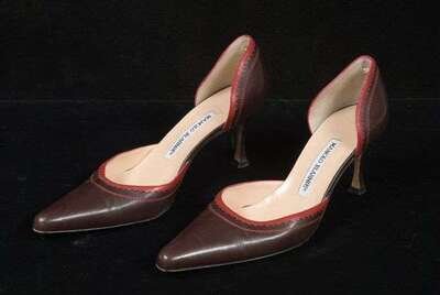 Manolo Blahnik brown and red leather d'Orsay pumps