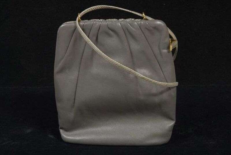 Judith Leiber gray lizard and leather purse