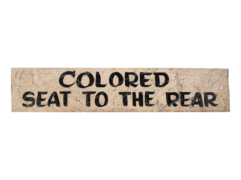 [CIVIL RIGHTS - SEGREGATION]. Colored Seat to the Rear. Bus sign. N.p., n.d.