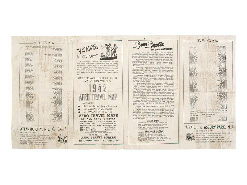 [BUSINESS]. Travel Guide of Negro Hotels and Guest Houses. Published by Afro-American Newspapers of Baltimore, Washington, Philadelphia, Newark, and Richmond, [ca 1942].