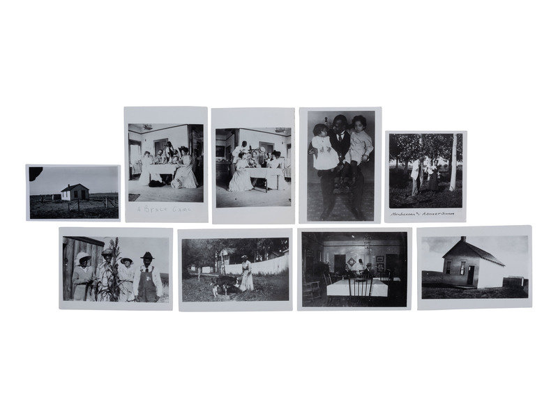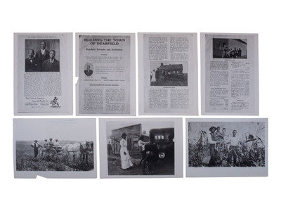 17 silver gelatin photographic copies of earlier photographs or documents related to the all-Black town and settlement of Dearfield, Colorado, founded by O.T. Jackson, ranging in size from approx. 5 x 5 in. to 5 x 7 in., including: 4 images of pages of a brochure about the town, 7 images featuring O.T. Jackson and/or his family members, one image of an unidentified resident farm, one image of the school house and church, and 4 others. Each with inscribed caption on verso.