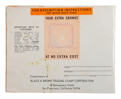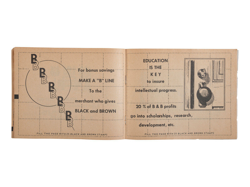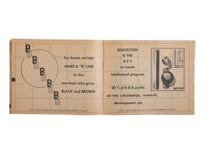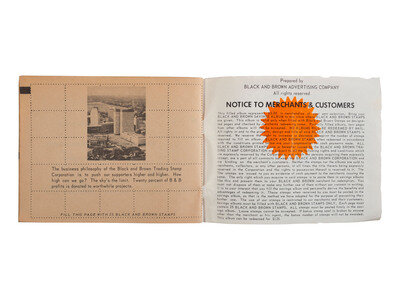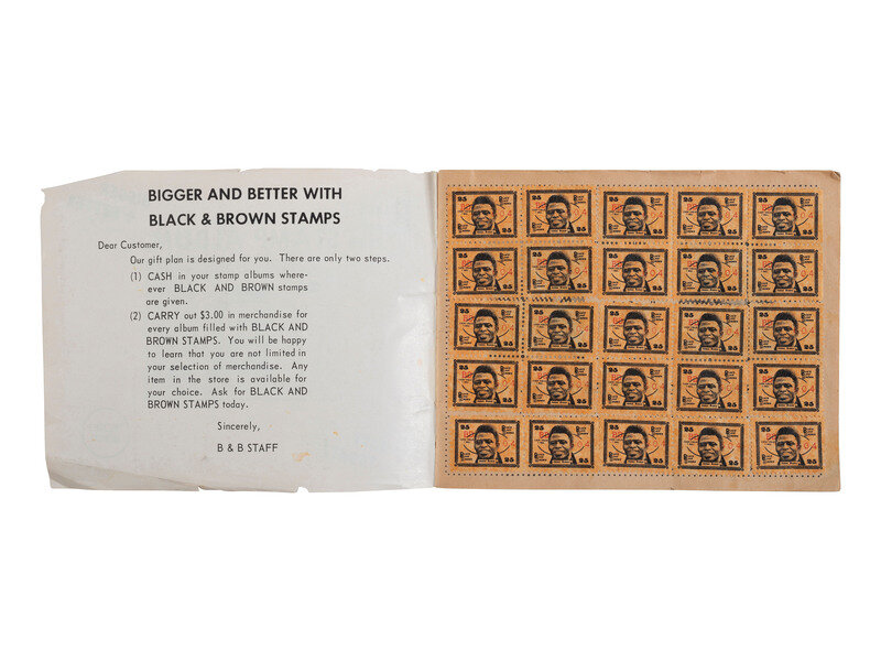 [BUSINESS - MUSIC]. Black and Brown Stamp Album. San Francisco, CA: Black & Brown Trading Stamp Corporation, [1969]. Promoting black-owned businesses.