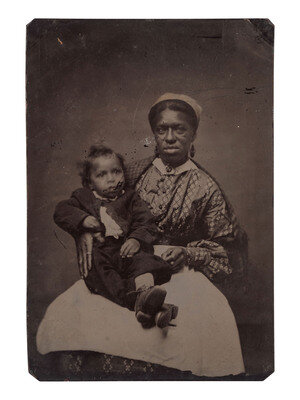 [EARLY PHOTOGRAPHY]. Tintype of African American mother and child.