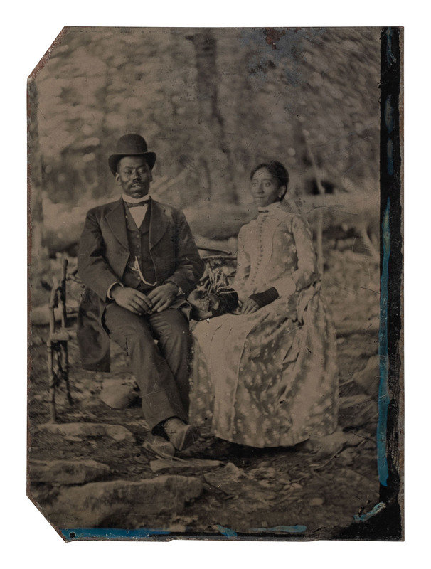 [EARLY PHOTOGRAPHY]. Tintype of an African American couple in an outdoor setting.