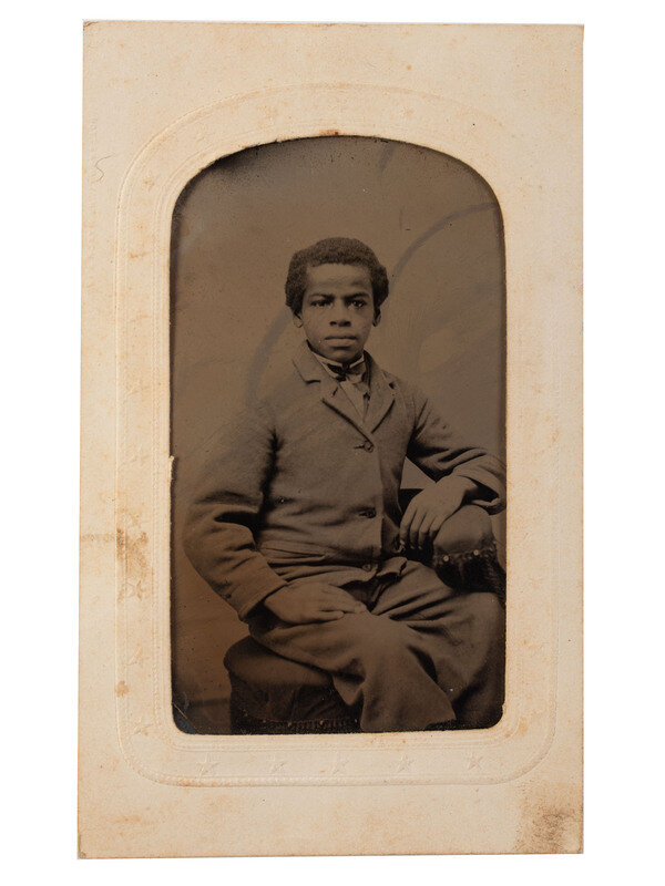 [EARLY PHOTOGRAPHY]. Tintype portrait of a young African American male subject.