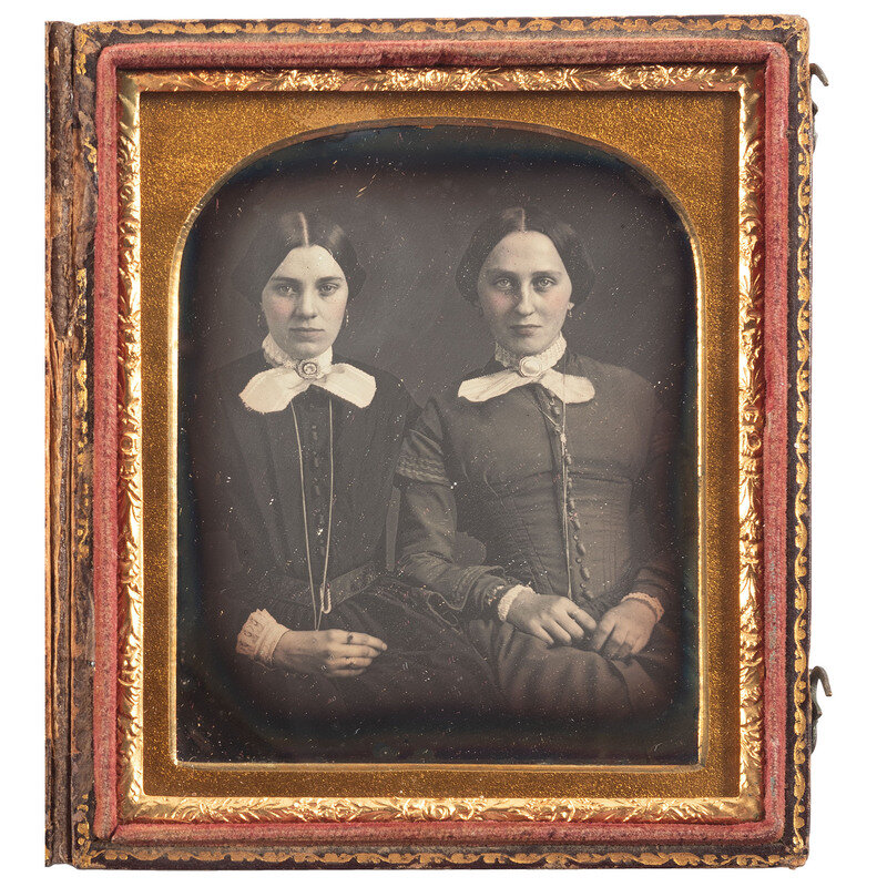 [EARLY PHOTOGRAPHY]. BALL, James Presley (1825-1904), photographer. Sixth plate daguerreotype of two women. Cincinnati, Ohio.