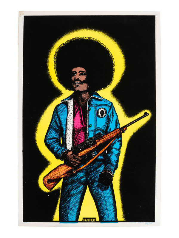 [BLACK POWER]. A group of 2 blacklight posters on velvet, incl. Pantheress and Panther. [Ca 1970].