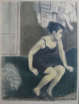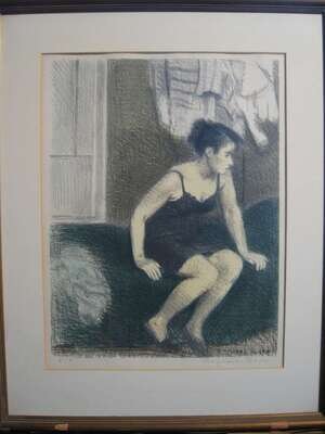 RAPHAEL SOYER (AMERICAN 1899-1987) "BEHIND THE SCREEN (MODEL RESTING)"