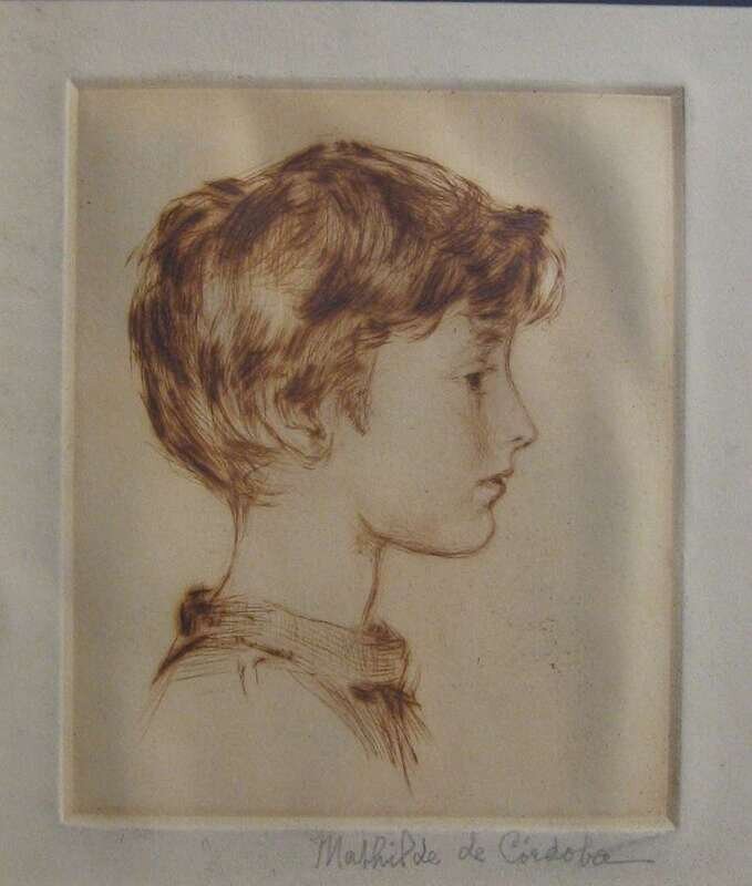 MATHILDE DE CORDOBA (AMERICAN 1875-1942)TWO DRYPOINT ETCHINGS YOUNG GIRL IN PROFILE