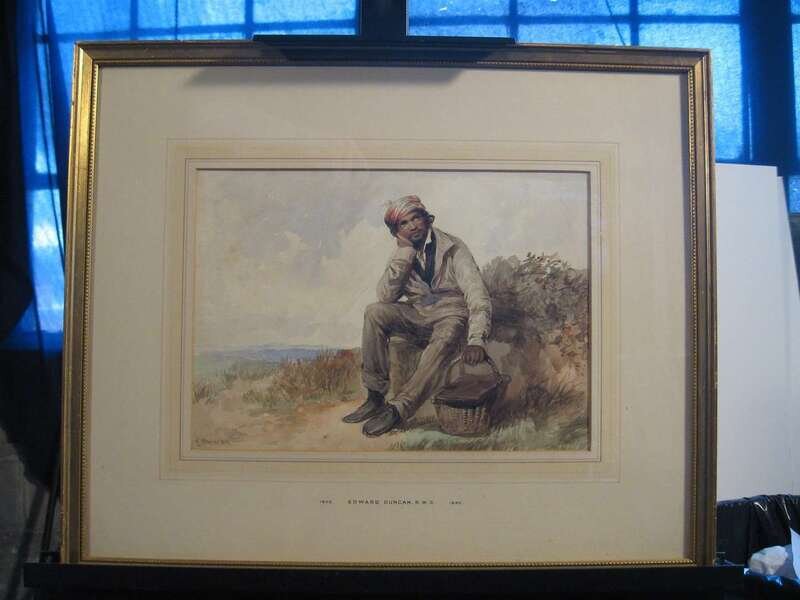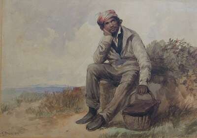 EDWARD DUNCAN (BRITISH 1803-1882) FIGURE RESTING IN LANDSCAPE