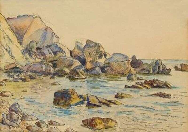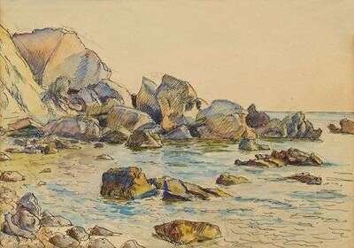ATTRIBUTED TO ROGER ELLIOT FRY (BRITISH 1866-1934) ROCKY COASTAL VIEW