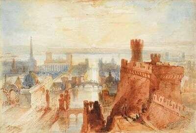 JAMES BAKER PYNE (BRITISH 1800-1870) CITYSCAPE AT DAWN