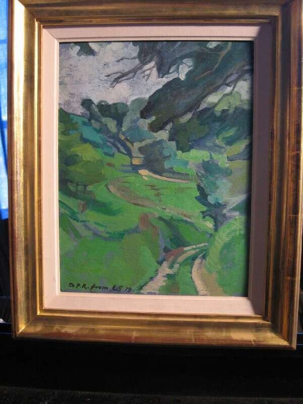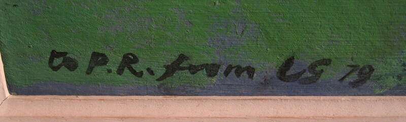 Inscribed 'to P.R. from L.G. '79' bottom left, oil on board