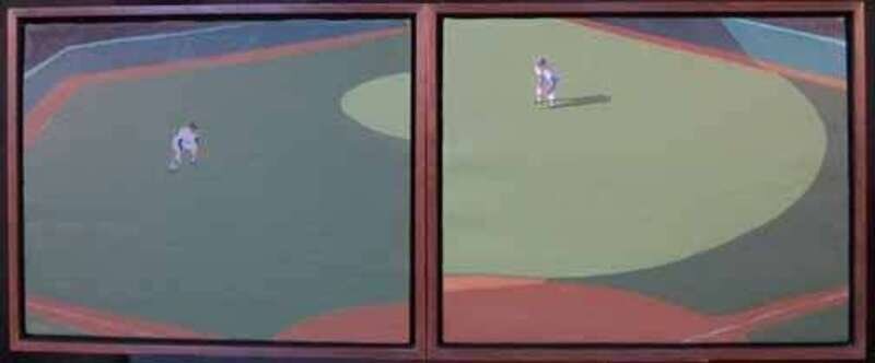 MAX MASON (AMERICAN B. 1952) GROUP OF THREE BASEBALL PAINTINGS "DEEP CENTER"