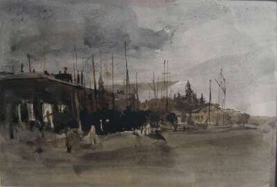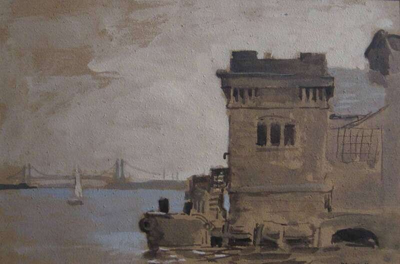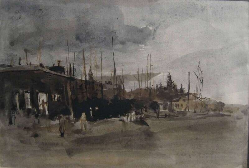 THREE WORKS ON PAPERSEYMOUR REMENICK (AMERICAN 1923-1999) PHILADELPHIA LANDSCAPE WITH BRIDGEHARBOR SCENEPHILADELPHIA BRIDGE SCENE