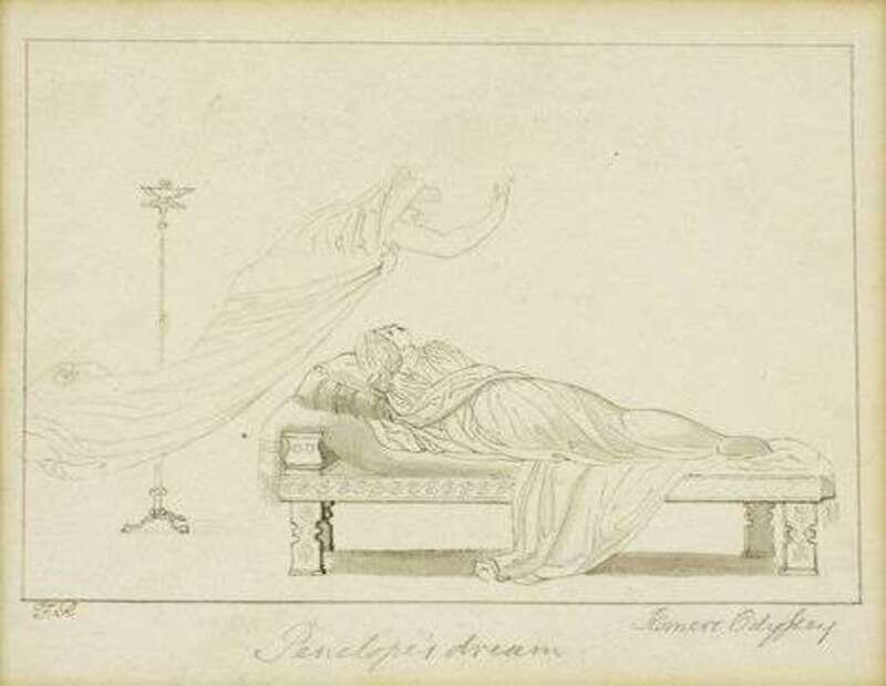 Signed with Initials bottom left, inscribed 'Penelope's dream, Homers Odyssey [sic] bottom center and bottom right, ink, pencil and watercolor on paper