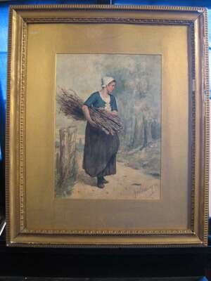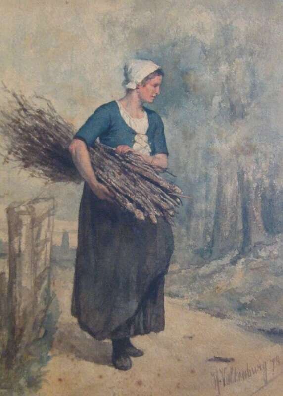 HENDRIK VALKENBURG (DUTCH 1826-1896) GATHERING FIREWOOD AND A COMPANION A WATER CARRIER, A PAIR