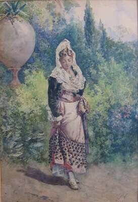MARIANO DE FRANCESCHI (ITALIAN 1849-1896) MAIDEN IN GARDEN