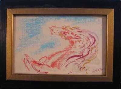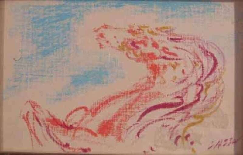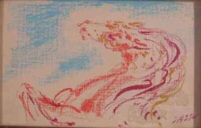 Signed bottom right, crayon on paper
