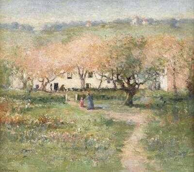 CHARLOTTE BUELL COMAN (AMERICAN 1833-1924) LANDSCAPE WITH FARM HOUSE