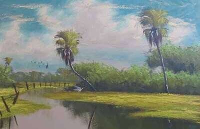 ALFRED HAIR (AMERICAN 1931-1971) MARSHLAND WITH PALM TREES