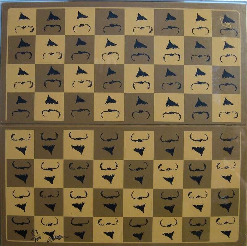 ARMAN (FRENCH/AMERICAN 1928-2005) "CHESSBOARD IN HOMAGE TO MARCEL DUCHAMP'S 'L.H.O.O.Q.'"
