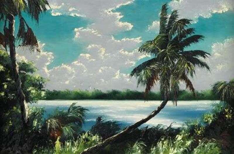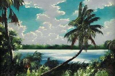 MARY ANN CARROLL (AMERICAN 20TH CENTURY) PALM TREE BY THE WATER