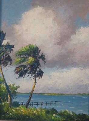 HAROLD NEWTON (AMERICAN 1932-1994) PALM TREES IN THE WIND