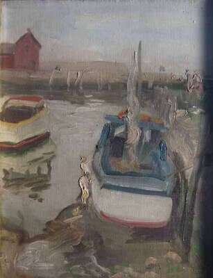 MARINE SCENE, BOAT AT A DOCK
