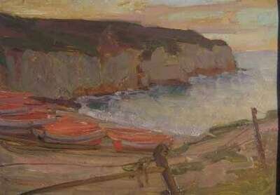 TWO OILSHAROLD SPEED (BRITISH 1872-1957) BOATS AT WATER'S EDGE
