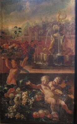 CONTINENTAL SCHOOL (19TH CENTURY) PUTTI WITH GRAPES, FOUNTAIN AND LANDSCAPE IN BACKGROUND