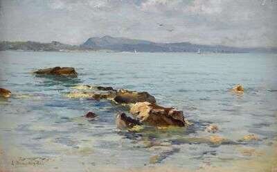 EUGENE BAPTISTE EMILE DAUPHIN (FRENCH 1857-1930) SUNNY COASTAL VIEW