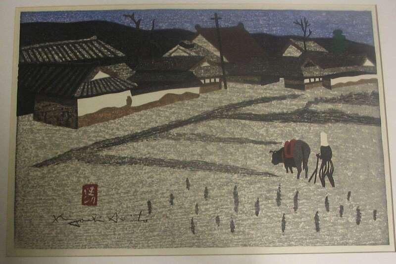 KIYOSHI SAITO (JAPANESE 1907-1992)TWO COLOR WOODCUTS VILLAGE SCENE