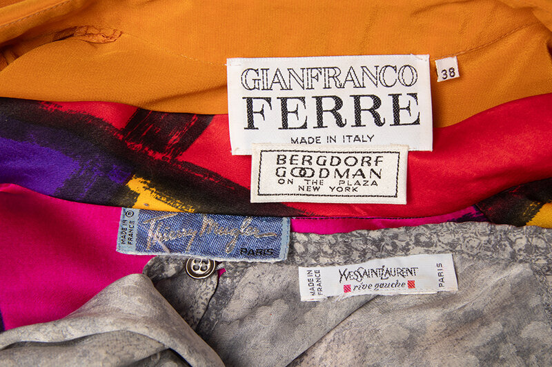 Three Designer Blouses by Gianfranco Ferré, Yves Saint Laurent, and Thierry Mugler, 1980-90s