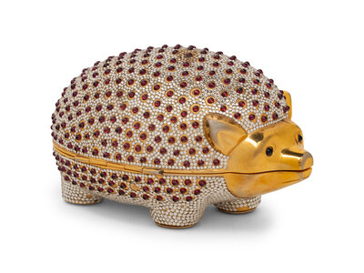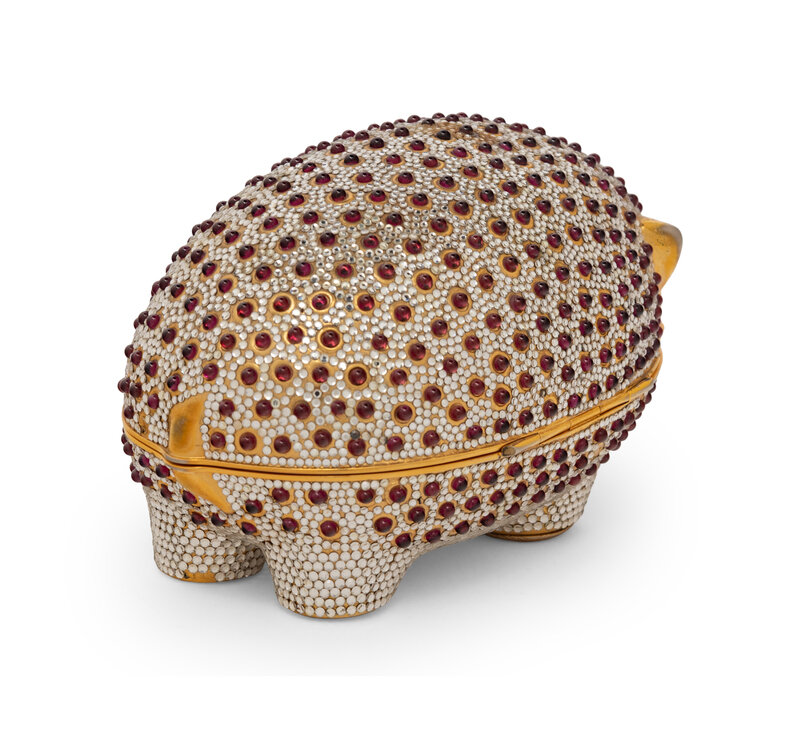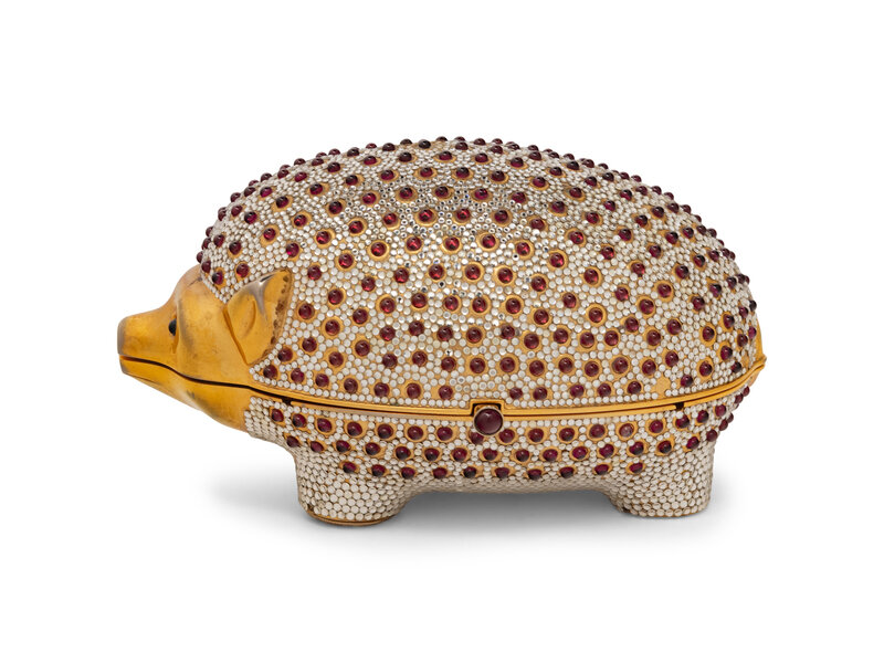 Judith Leiber Hedgehog Minaudière in Gold-Tone Metal with Crystal and Cabochon Embellishments