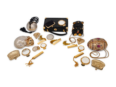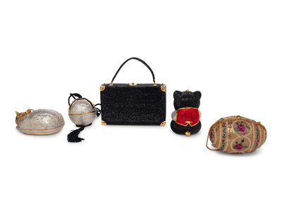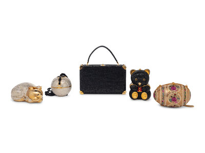 "Sleeping Cat and Kitten" minaudière in Swarovski-embellished gold-tone metal.