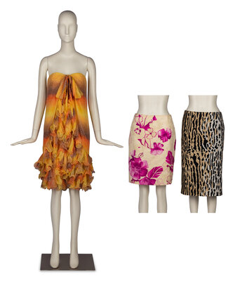 A Group of Two Skirts by Valentino and Bill Blass Dress