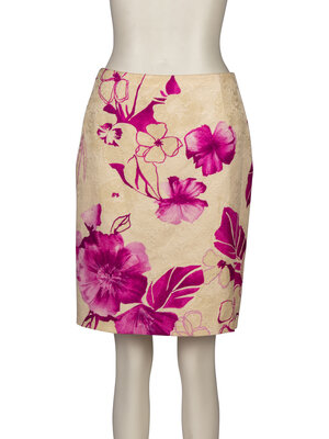 Straight skirt in floral-printed silk/cotton blend jacquard. Fully-lined with side zipper closure.