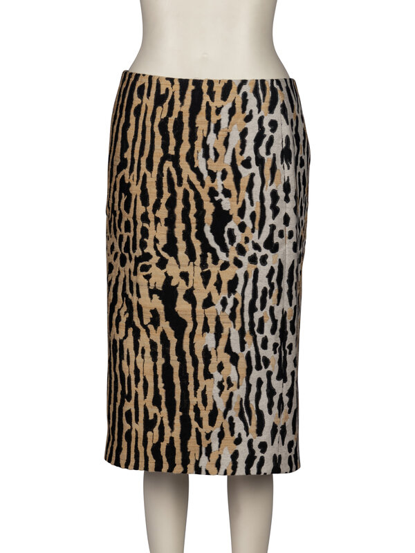 Straight skirt in printed silk jacquard. Fully-lined in with zipper closure.