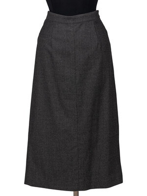 Long, straight skirt in grey stretch wool with dual sideseam zippers on both sides. Fully-lined.