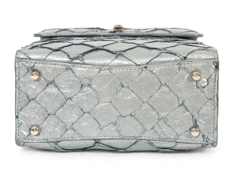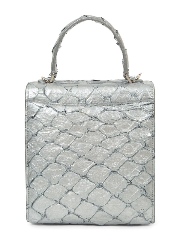 To commemorate the twenty-fifth annual Old Bags Luncheon (OBL), the signature event for the Center for Family Services of Palm Beach County, luxury handbag designer, Cecy Martinez, has created the Silver Fish Skin Top Handle Bag. Includes a custom-made removable silver charm, highlighting OBL’s Silver Jubilee.