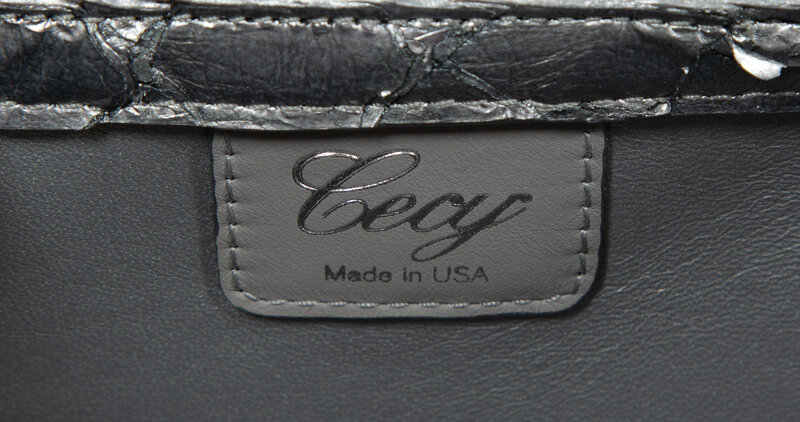 This handbag was handcrafted in the USA with the skins of the Pirarucu fish, the largest freshwater fish on the planet. Native to the Amazon River, these fish are eaten by the local population and the skins are discarded, then trimmed, dyed, and finished into leather used in luxury products. This handbag is unique and considered one-of-a-kind. Like all Cecy® Handbags, it was handcrafted by one of the world’s most skilled artisans using the finest quality materials. Its style reflects classic beauty and elegance.