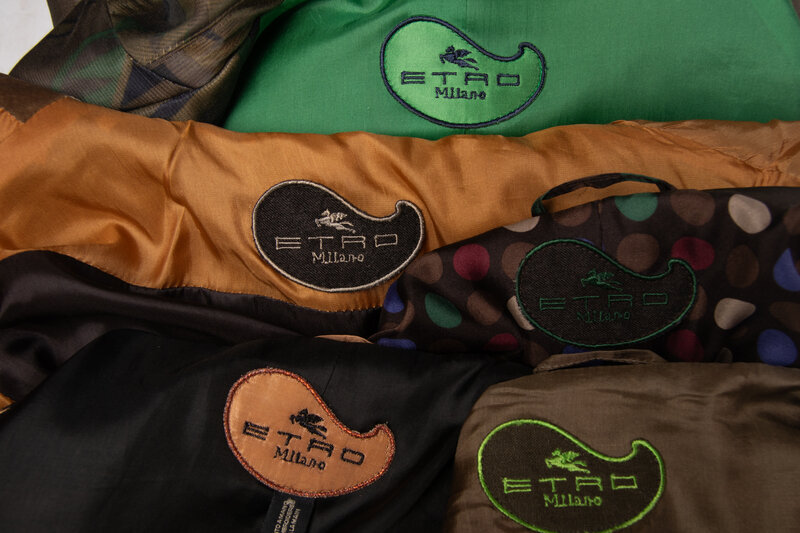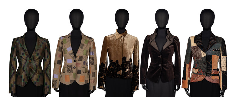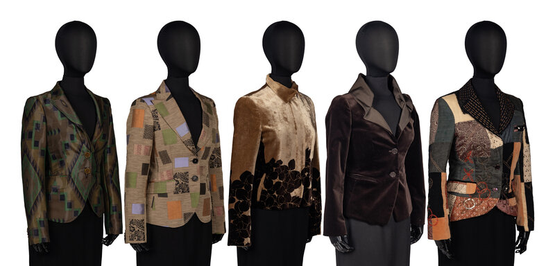 Single-breasted jacket in silk-linen blend with patchwork-effect jacquard.