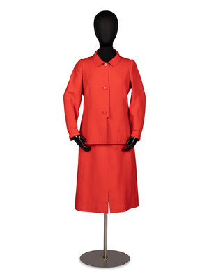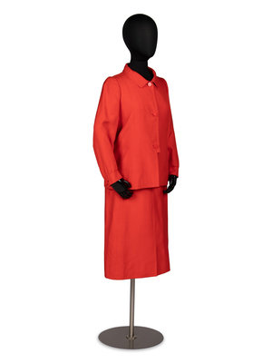 Straight skirt in red cotton blend. Fully-lined with a zipper closure.