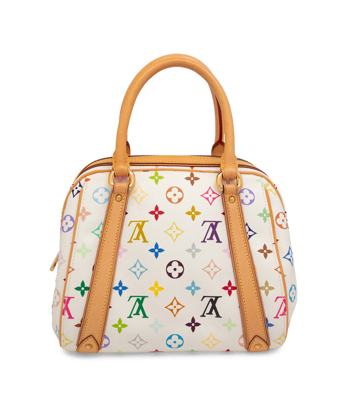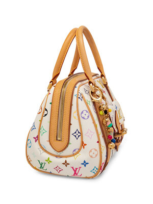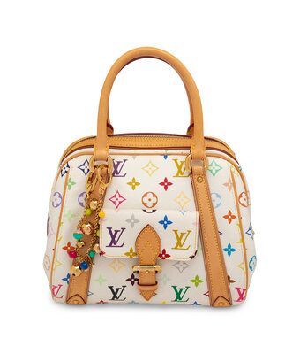 Louis Vuitton Priscilla Handbag in Multicolor Monogram Canvas and Vachetta Leather with Gold-Tone Hardware and Charm