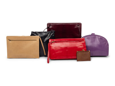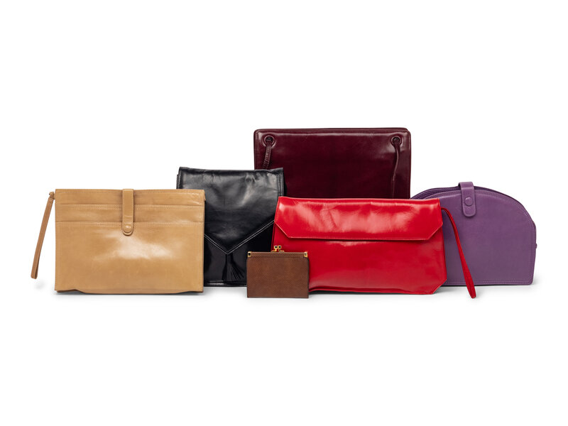 Medium clutch in red goatskin leather with gold-tone hardware.