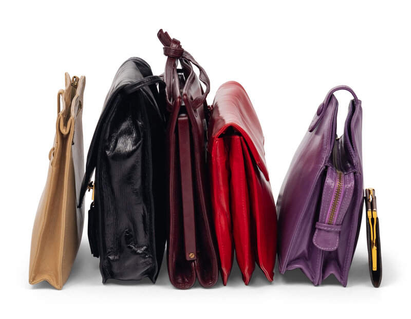 Additional Information: Satin lining; zippered interior pocket; five interior compartments.